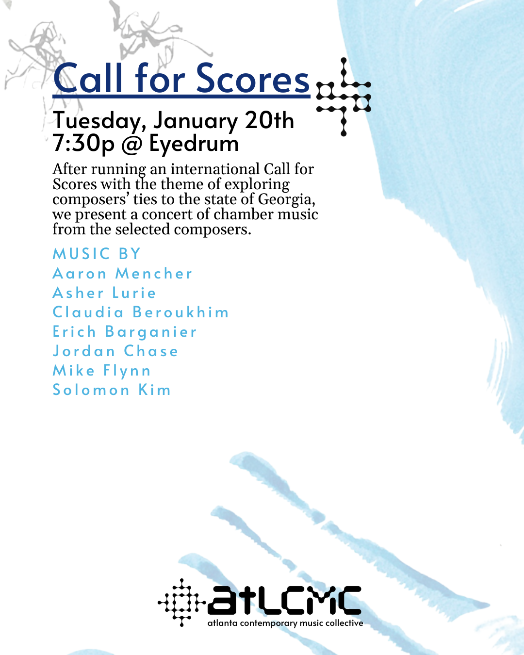 Get your tickets to experience and support the Atlanta Contemporary Music Collective Tickets and Merch Collective Chamber: Call for Scores $15.00 Purchase Added! Tee Shirt $25.00 Small Medium Large XLarge Purchase Added! Tote Bag $15.00 Purchase Added!